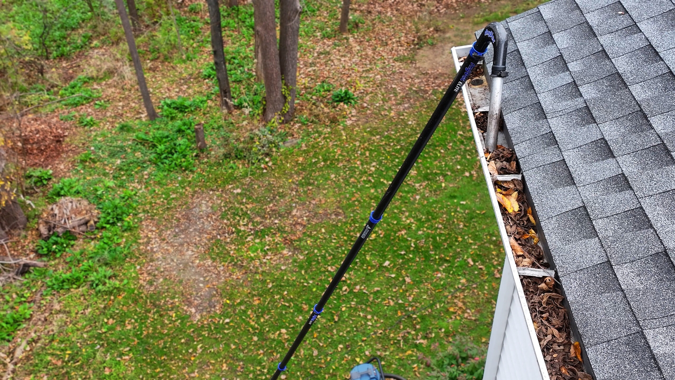 - Use SkyVac to vacuum out leaves, sticks, and debris from your gutters